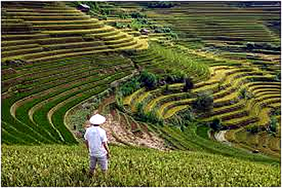 Uma qualidade apreciada no arroz é sua relativa facilidade de adaptação a diferentes climas, solos, relevos e ambientes. Por exemplo, ele se dá super bem nos pampas gaúchos, mas pode também ser cultivado em terrenos acidentados. Nas regiões montanhosas utiliza-se a técnica de plantações em terraços, como observei zanzando de bicicleta pelo Vale de Katmandu no meio de arrozais. Do vale eu avistava igualmente as plantações em terraço nas encostas do Himalaia. Pareciam escadarias gigantes!