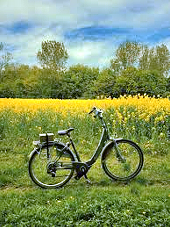 De bicicleta, no meios dos arrozais do Vale de Kamandu