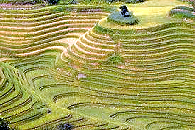 As plantações nepalesas em terraço são uma antiga técnica agrícola utilizada há milênios. Hoje, aliás, é uma marca registrada do Vale de Katmandu, com suas encostas íngremes. Afinal, em terrenos acidentados o uso de tratores e máquinas agrícolas é inviável. Aliás, as plantações em terraço não são utilizadas apenas no Nepal, mas em todas áreas acidentadas do planeta, como na China e igualmente no Japão.
