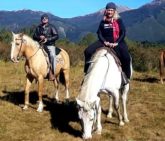 Outro passeio nas proximidades muito agradável, é a cavalgada. Dessa forma, pudemos fazer um belo passeio em uma estância vizinha da cidade, junto ao lago Gutierrez, um espelho azul entre a vegetação. O final da cavalgada termina numa das pontas do Lago Gutierrez, cujas águas brilhantes sob o sol do começo da tarde, e desponta no meio do arvoredo.