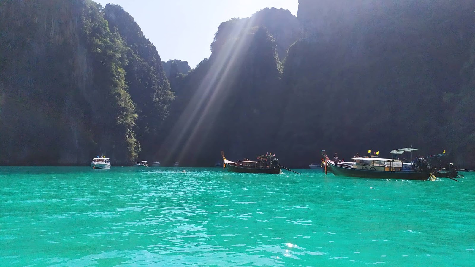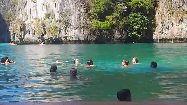 Antes era possível mergulhar mesmo naquela praia do filme com Leonardo di Caprio. Acabou a festa. Essa praia e outras hoje estão fechadas, mas você pode, entretanto, filma-la do barco meio de longe.