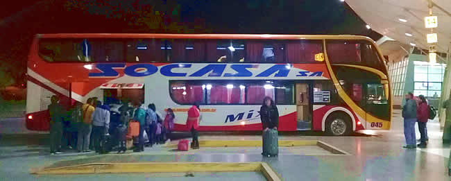Assim também, todos os ônibus de longa distância existem toilettes a bordo. Na Argentina e Chile o serviço rodoviário foi quase sempre satisfatório.